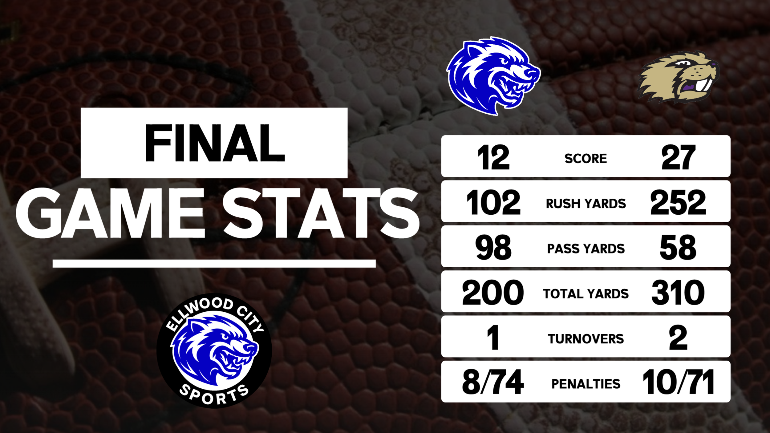 Ellwood City would hit the 200 yard mark and actually have less penalties and turnovers in the game, but the running offense of the Golden Beavers would hit their average yet again, going for 252 yards in the game. Western Beaver improved to 7-0 (4-0) with the victory, while Ellwood City now falls below the playoff line with back-to-back losses to go 3-4 (2-2).