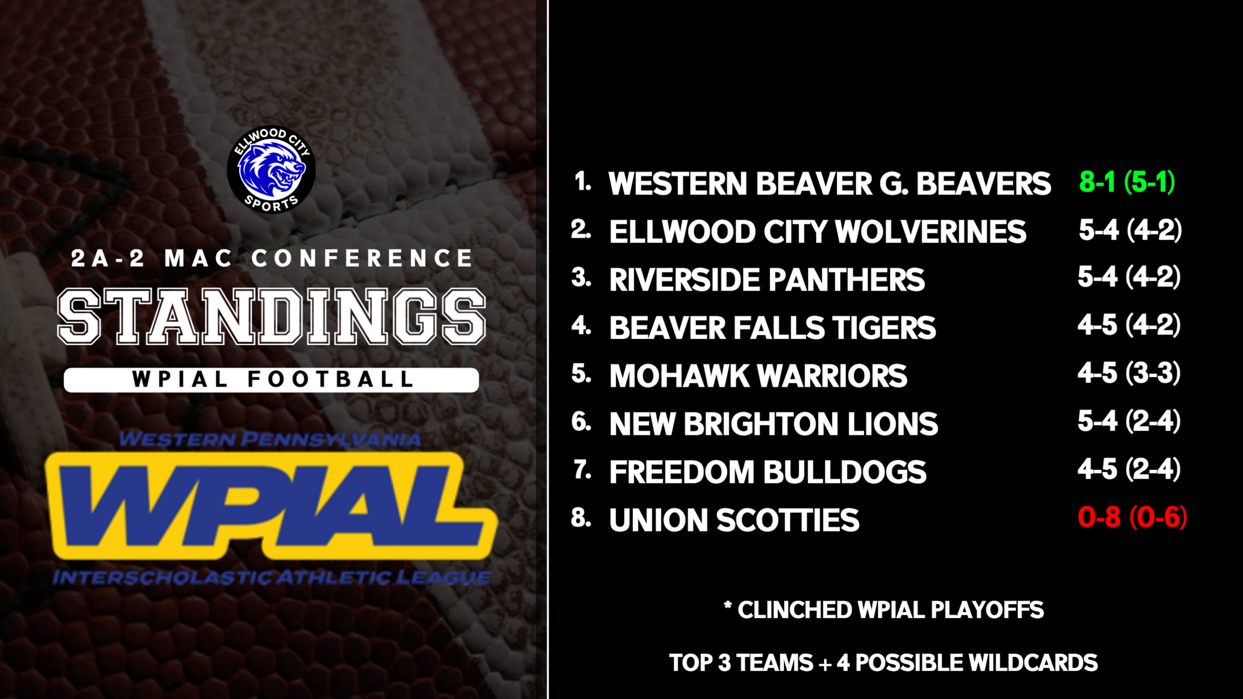 Either way folks, it’s going to be a crazy last week of play with over 16 scenarios that can happen for playoffs. Be sure to tune in to Ellwood City Sports this coming Friday as we will have coverage of Week Nine action between Ellwood City and Beaver Falls. Pregame will start approximately 6:45 PM from Reeves Field.
