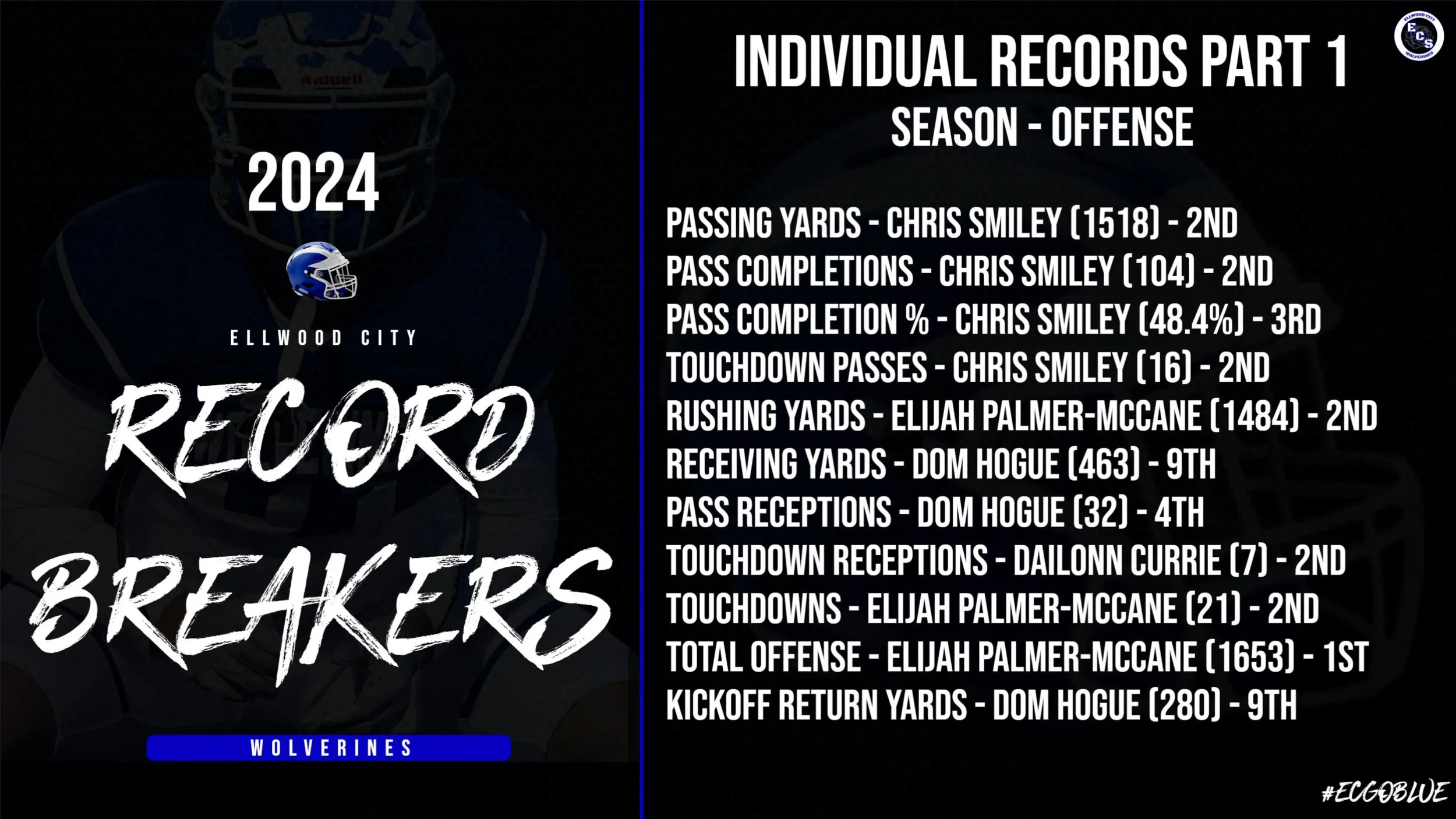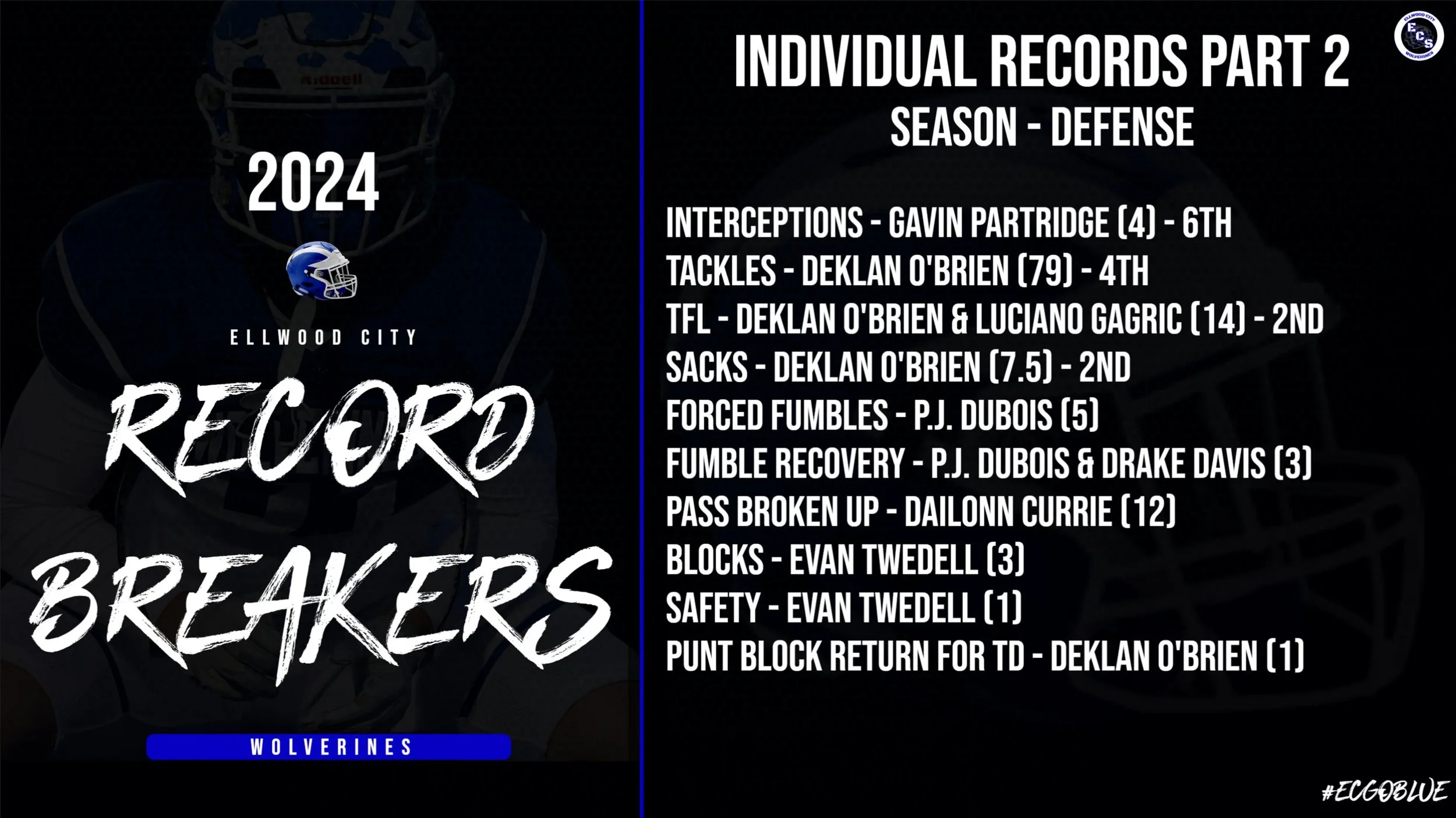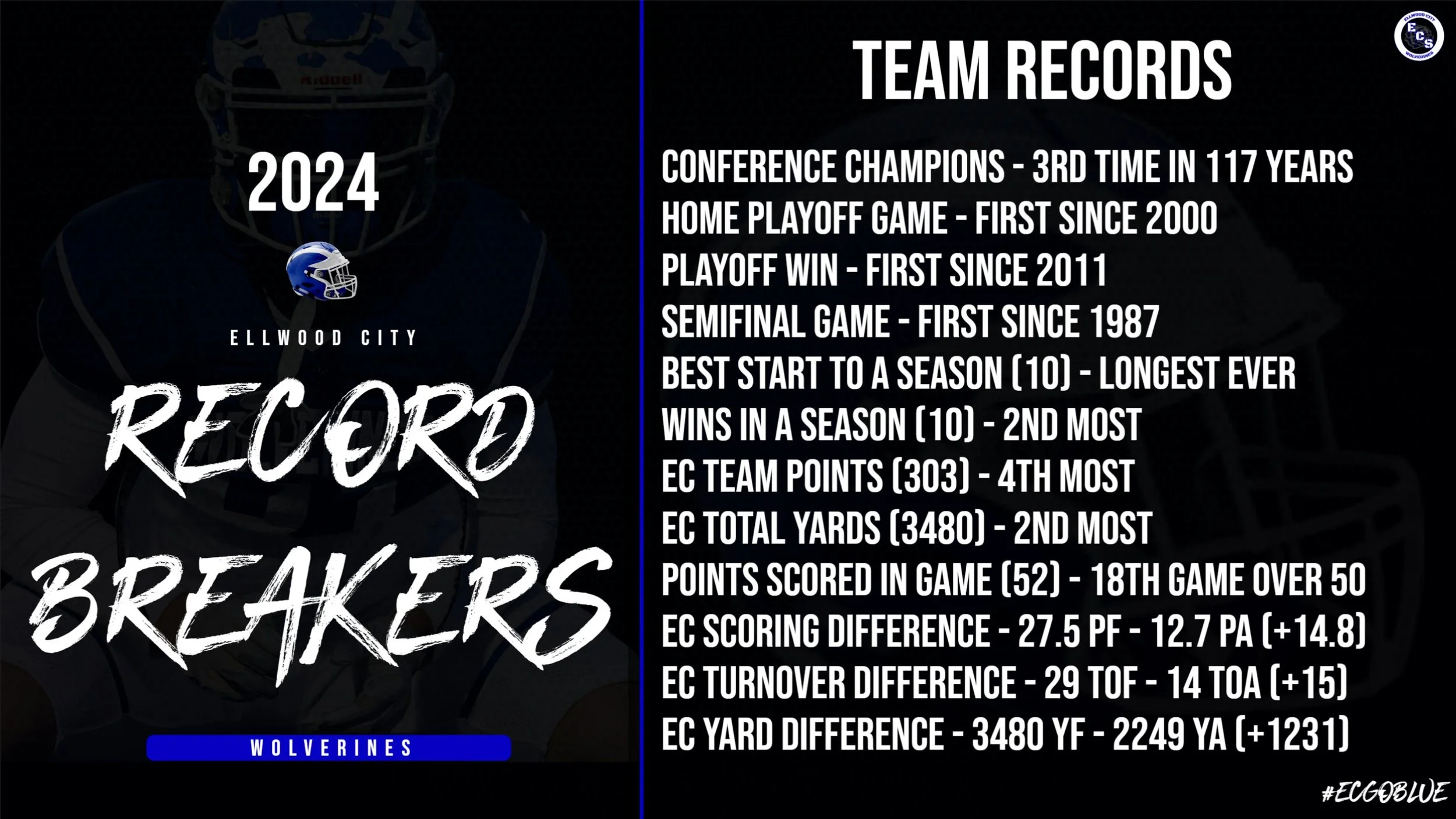 Ellwood City finishes the year officially with a record of 10-1, the second most wins every in a season (11 in 1987) while also posting the best start to a season with 10 straight victories. The Wolverines also took home the MAC conference title, something that has happened only three times in the program’s 117 years of football. The home playoff game was the first hosted at Helling Stadium this year since 2000 with the victory in playoffs being the first since 2011. As you can tell, the accolades continue to come in for the Wolverines who ended up breaking overall 9 combined records as a team this year alone, setting the bar high moving forward with the program.